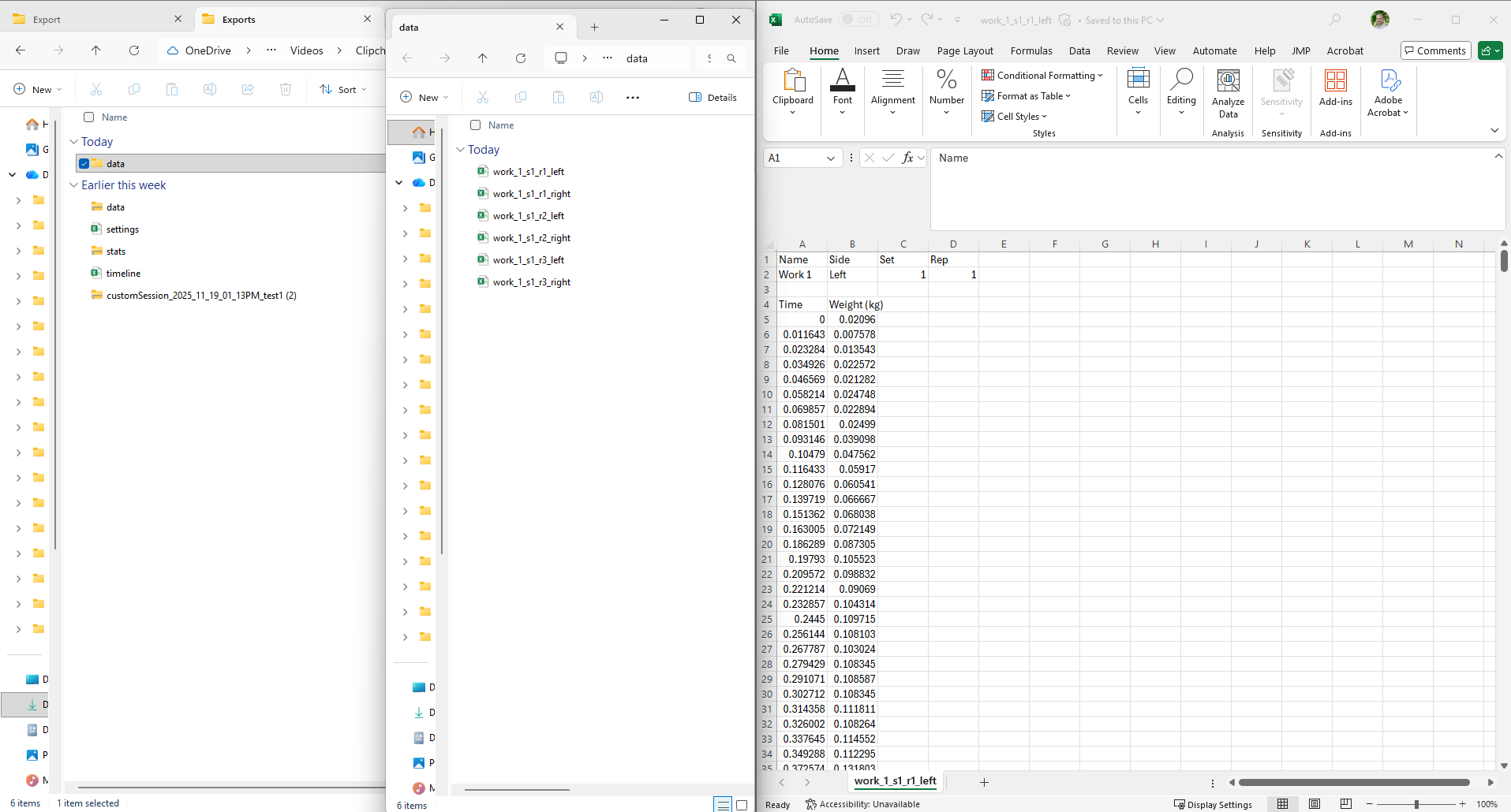 Inside the unzipped folder, you'll find a data folder containing the raw data files from the testing session you just completed.